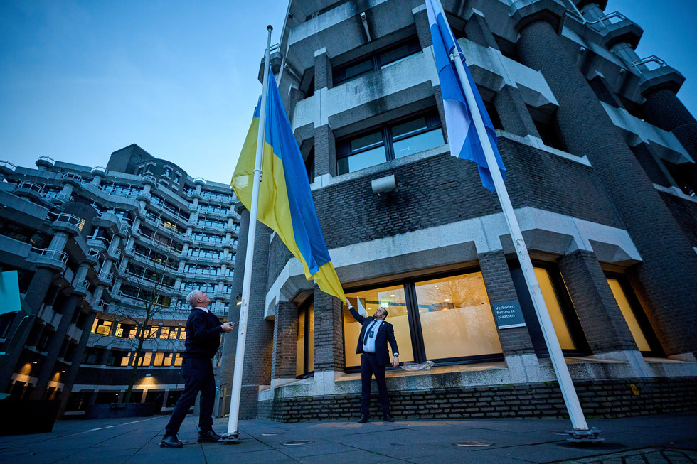 [D66] Plaatje: Ukraiense vlag wappert vandaag bij Tweede Kamer