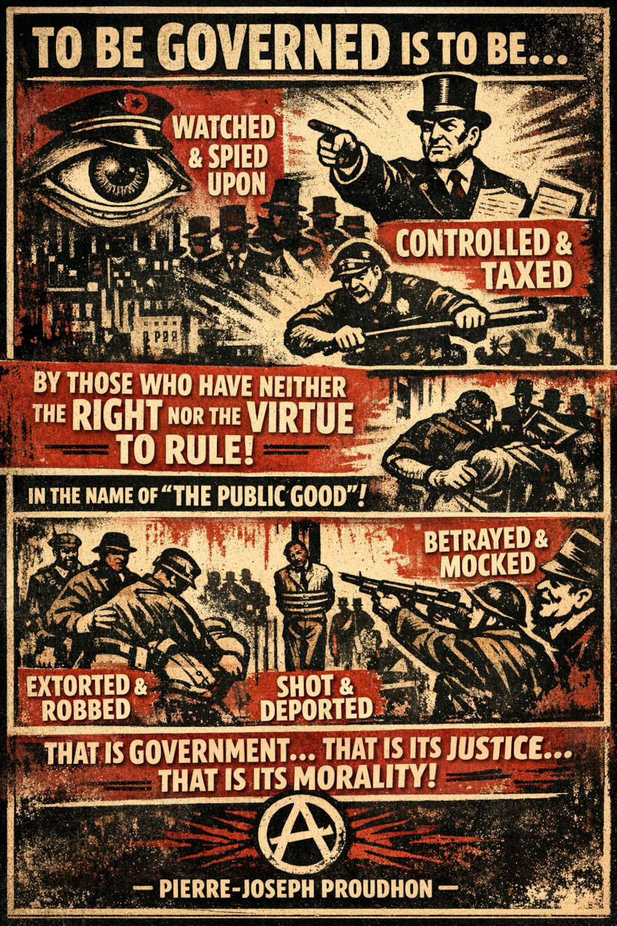 > To be GOVERNED is to be watched, inspected, spied upon, directed,